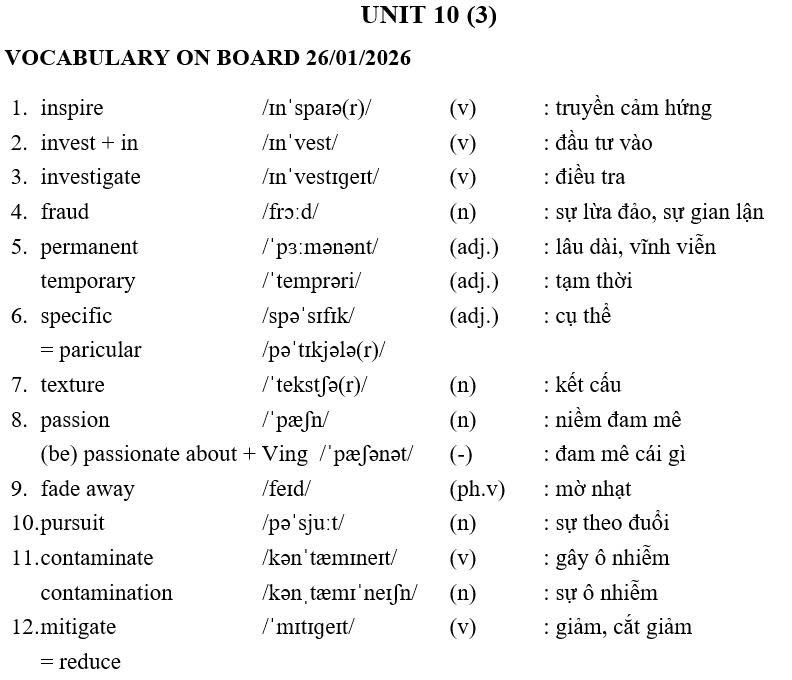 THỨ HAI NGÀY 26/01/2026 - BTVN 9B