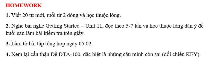 THỨ NĂM NGÀY 29/01/2026 - BTVN 9A