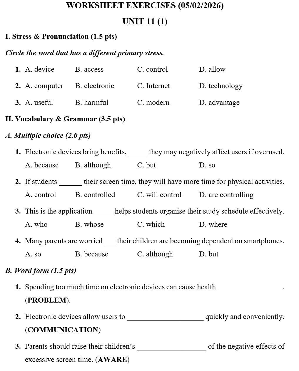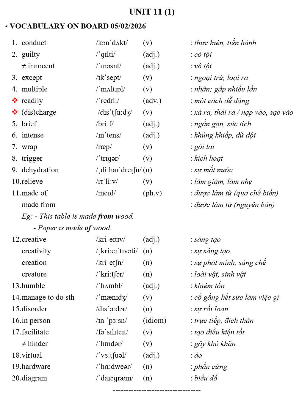 THỨ NĂM NGÀY 05/02/2026 - BTVN 9A