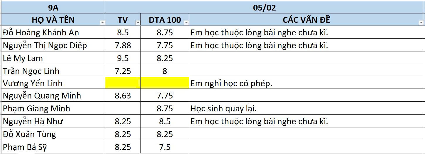 THỨ NĂM NGÀY 05/02/2026 - QLHS 9A