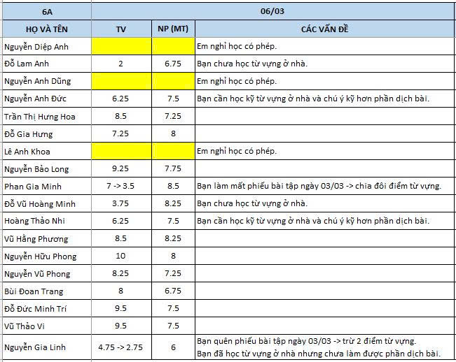 THỨ SÁU NGÀY 20/03/2026 - QLHS 6A
