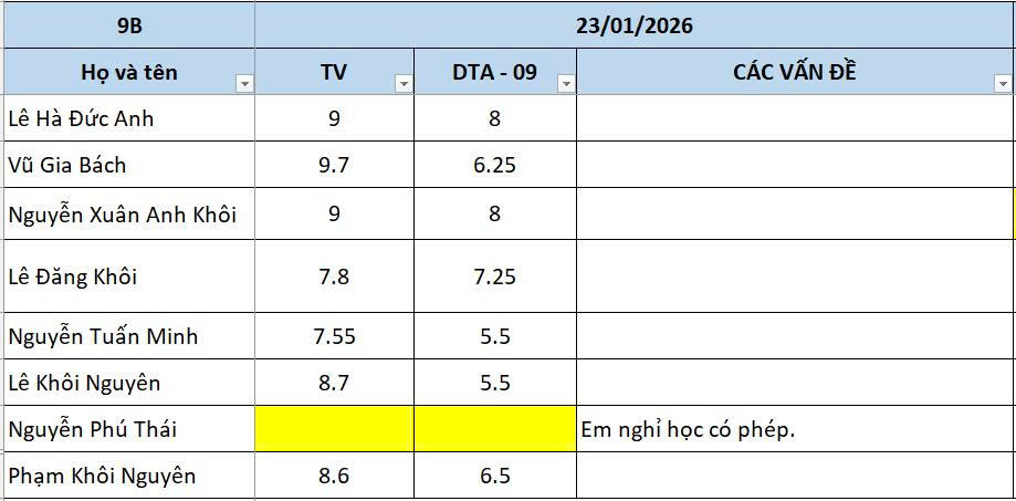 THỨ SÁU NGÀY 23/01/2026 - QLHS 9B